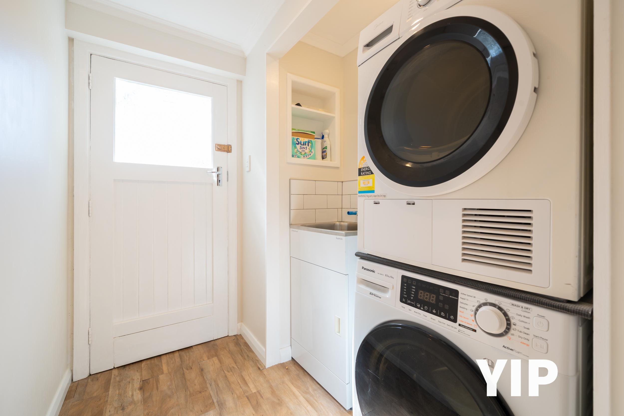 And now the downstairs. You'll find yourself another lounge, bedroom, bathroom and laundry with plenty of storage here. A feature wall lines the bedroom, keeping the consistency of character in this home, while the lounge and bathroom are modernised to feel like you're in near new territory!
