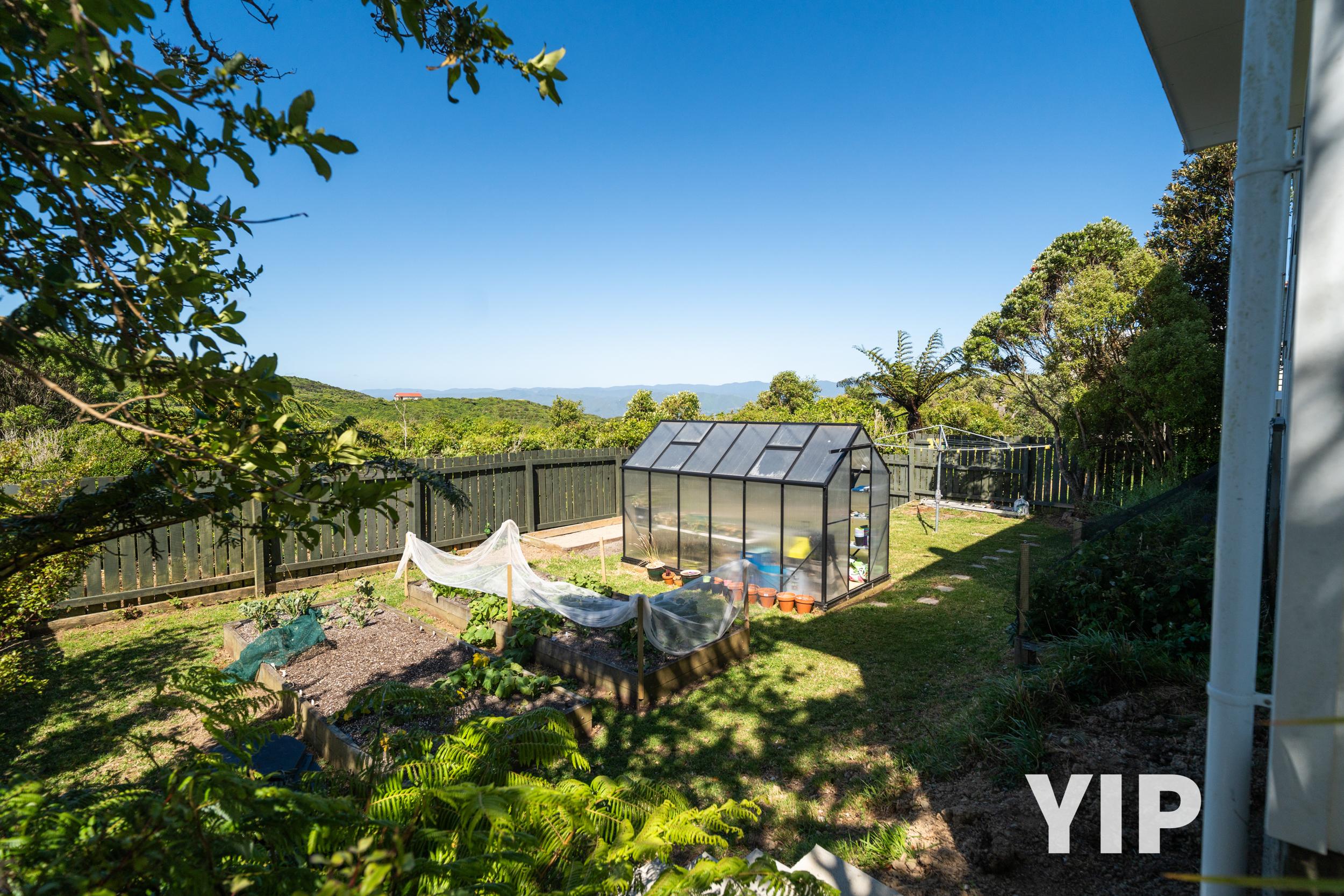 For those who love a touch of green thumb magic, the veggie gardens are thriving. The greenhouse which could also be yours, is a dream. There's even asparagus growing out here that's ready for your first harvest.